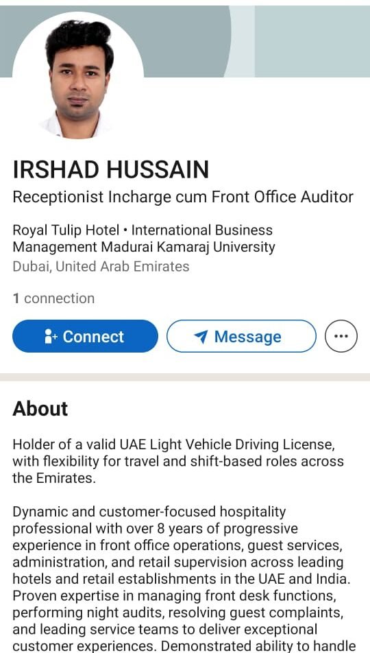 Landed his dream job in Dubai as a Cashier/Billing Executive.